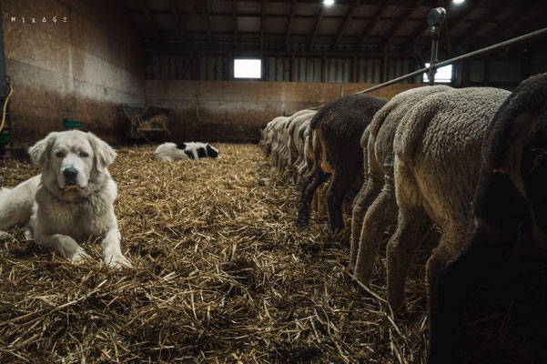 Après avoir participé à la transhumance de 300 brebis (voir les photos ici), je retourne à la bergerie car les petits agneaux sont